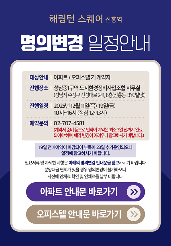 ※ 본 홍보물에 사용된 일러스트, 이미지 등은 소비자의 이해를 돕기 위한 것으로 실제와 다를 수 있습니다. ※ 본 홍보물에 기재된 개발계획(예정) 등은 각 지방자치단체 및 언론보도자료를 인용한 것으로 국가기관, 관할 지자체 및 기타 관계기관의 사업추진 중 변경, 지연, 취소될 수 있습니다. ※ 본 홍보물의 내용은 인허가 과정상 변경될 수 있으니 계약 시 주요내용을 반드시 확인하시기 바랍니다. Copyright©2024 HYOSUNG HARRINGTON SQUARE . All Rights Reserved.